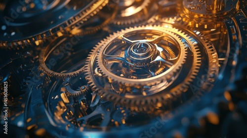 Steampunk gears web banner, background illustration, AI