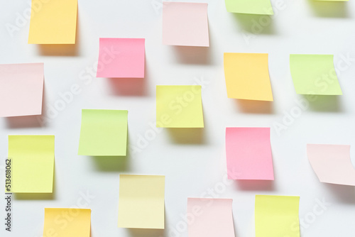 Sticky notes over white background.
