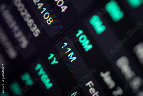 Stock market data on digital LED display. Fundamental and technical analysis with candle stick graph chart of stock market trading to represent about Bullish and Bearish point.