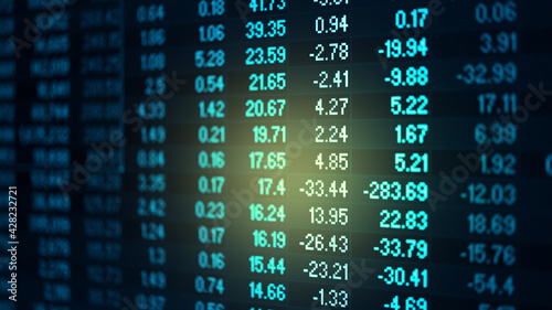 Stock market data on digital LED display. Fundamental and technical analysis with candle stick graph chart of stock market trading to represent about Bullish and Bearish point.
