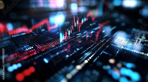 Stock market data visualization with fluctuating graphs and digital display for financial analysis : Generative AI
