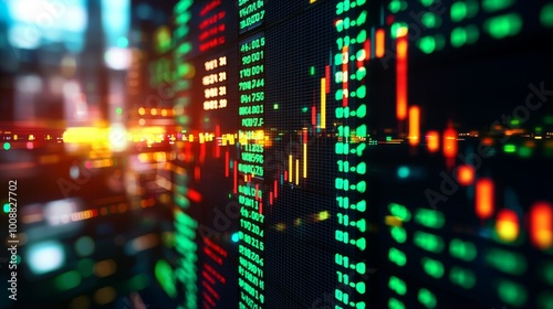 Stock market data visualization with graph and numbers on display.