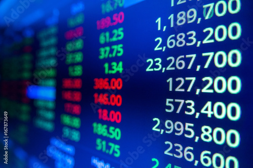 Stock market graph and ticker with blue screen for stock exchange analysis