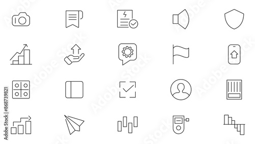 Stock market line icon set. Business, stock marketing, stock exchange, investment, shares, financial goals, bear marketing, trading, securities, and money outline icon collection. UI thin outline icon