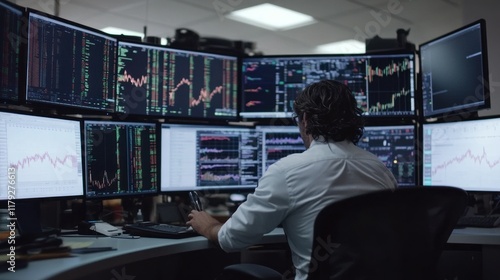 Stock Market Trader Analyzing Data on Multiple Monitors