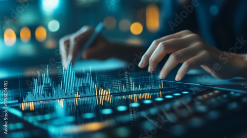 Stock traders pointing highest stock market on dynamic valued analysis on monitor real time screen, cooperating business investment in financial company to plan successful stock exchange. Sellable.