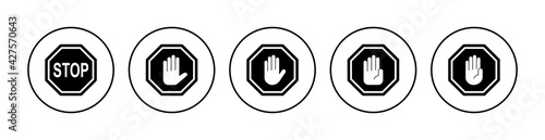 Stop icon set. stop road sign. hand stop icon vector