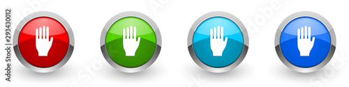 Stop silver metallic glossy icons, red, set of modern design buttons for web, internet and mobile applications in four colors options isolated on white background