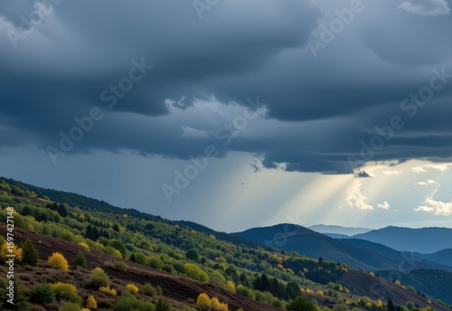 storm clouds moving upward along hill triggering rainfall pattern influenced by rising terrain below