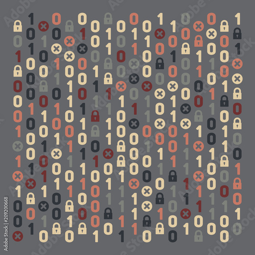 Streaming abstract binary code background with padlock. Data and technology, decryption and encryption. Coding or Hacker concept.