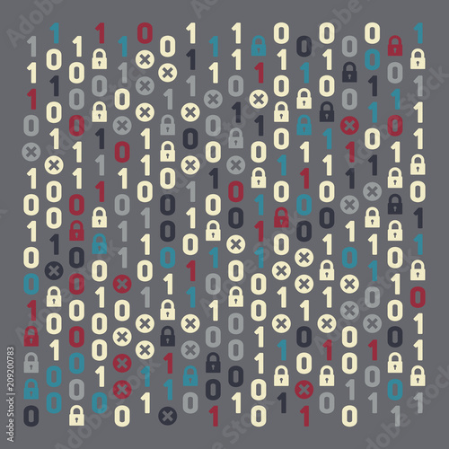 Streaming abstract binary code background with padlock. Data and technology, decryption and encryption. Coding or Hacker concept.