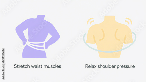 Stretching the waist muscles and releasing shoulder pressure icon, relaxing the waist muscles and reducing shoulder pressure, used for prolonged sitting and body adjustment scenarios.