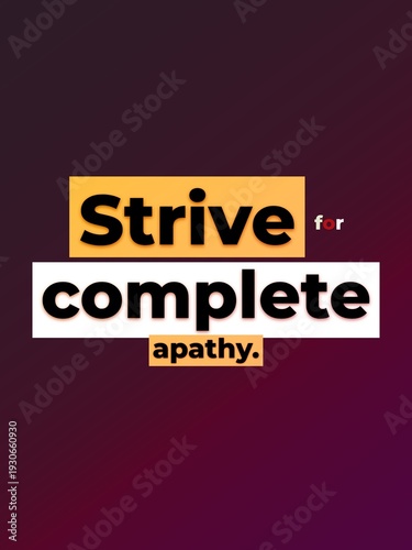 Strive for complete apathy text on gradient background conceptualizing indifference and detachment