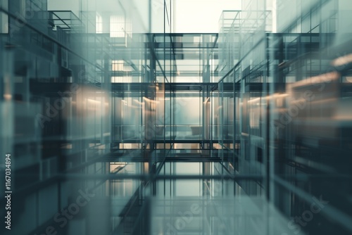 Stunning 3d render of a contemporary glass bank building with shallow depth of field focus