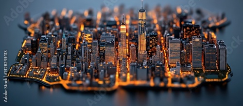 Stunning Aerial View of New York City Skyline at Dusk with Glowing Lights