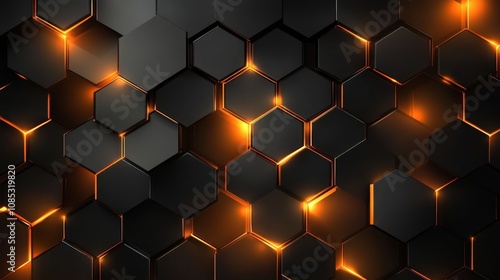 Stunning black and gold hexagonal pattern with glowing edges for modern design and technology applications