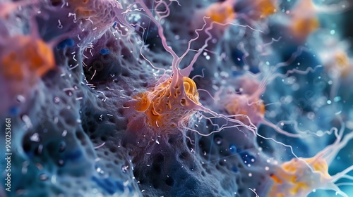 Stunning close-up of colorful neurons showcasing intricate details and vibrant textures in a biological setting.