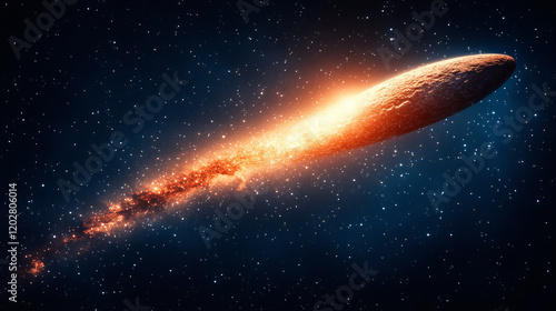 stunning comet streaks through cosmos, leaving fiery trail of stardust in its wake, illuminating dark expanse of space with vibrant colors