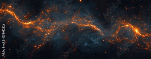 Stunning Cosmic Nebula with Glowing Filaments and Starry Background in Deep Space