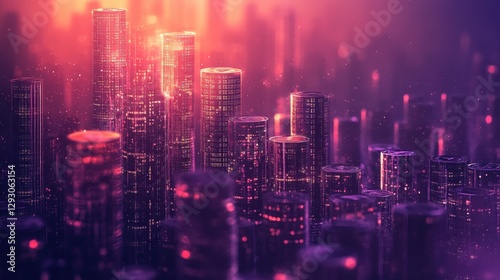 Stunning Night View of a Futuristic Cityscape With Neon Lights and Skyscrapers Depicting a Vibrant Urban Atmosphere at Dusk