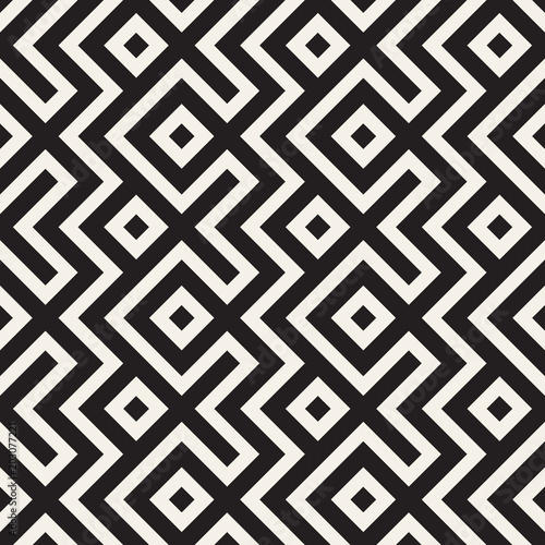 Stylish lines lattice. Ethnic monochrome texture. Abstract geometric background design. Vector seamless pattern.