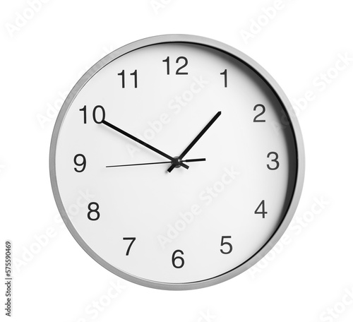 Stylish round clock isolated on white. Interior element