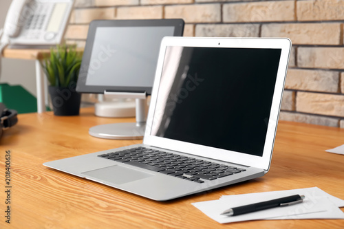 Stylish workplace with laptop on table