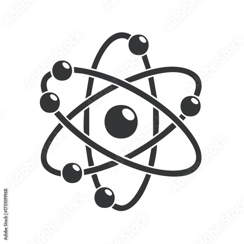 Stylized atom model with orbiting electrons and central nucleus