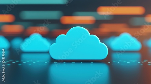 Stylized blue cloud icon on a digital surface with glowing elements, representing cloud computing and technology.