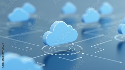 Stylized blue clouds representing cloud computing and technology, showcasing digital connections in a modern design.