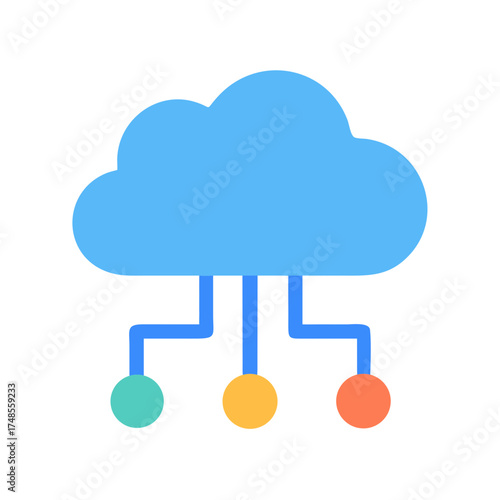 Stylized Cloud Computing Network Icon on Black Background for Digital Solutions