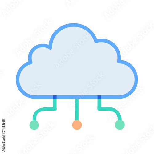 Stylized cloud connected by network cables to three circle nodes on black