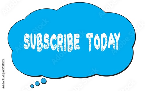 SUBSCRIBE TODAY text written on a blue thought bubble.