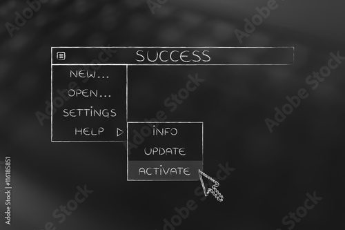 success dropdown menu, pointer selecting the Activate option