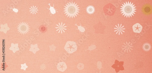 Summer flowers feat. beetles. 薄いオレンジ