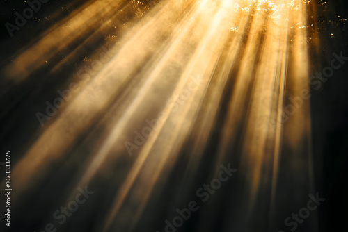 Sun rays isolated on black background for design overlay.