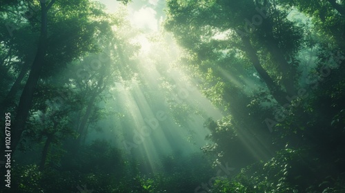 sun rays through the forest