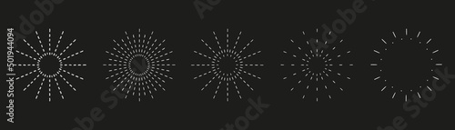 Sunburst set. Vintage sunrise collection. Vector light rays elements on black background. Vector Illustration