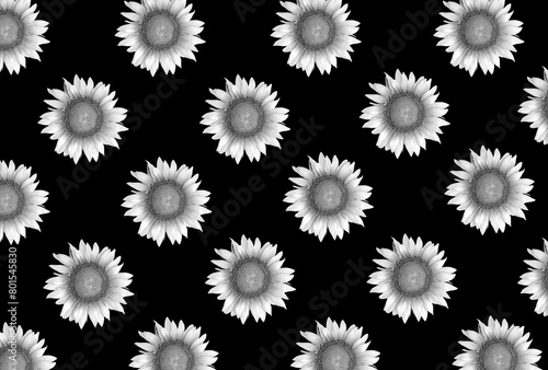 Sunflower on the black background. Pattern. Flat lay.