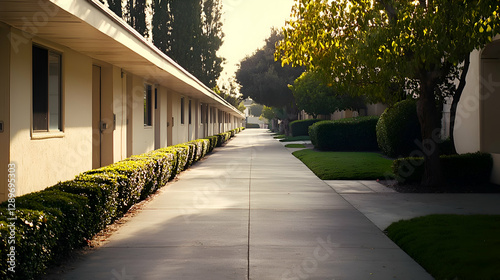 Sunlit Pathway Through Residential Complex