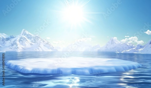 Sunny Arctic Scene with Ice Floe and Snow-Capped Mountains