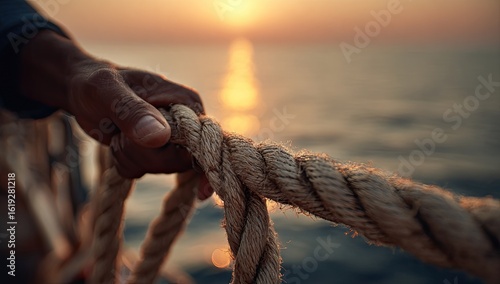 Sunrise Ocean Hand Rope Pulling Dawn Hope