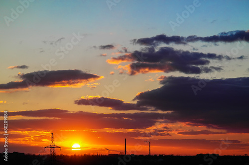 sunset among the clouds on a blue sky