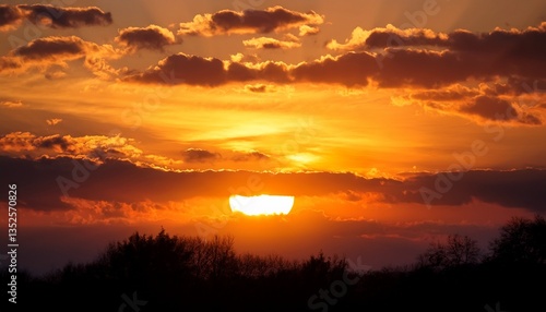 sunset cloudy sky with the orange sun