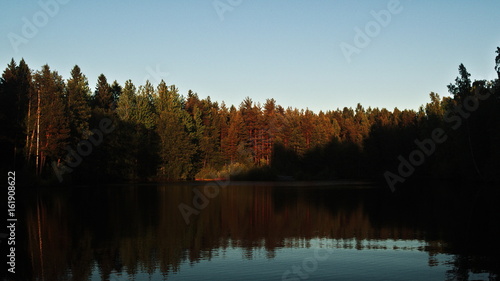 Sunset in a forest lake