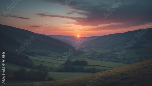 Sunset In A Peaceful Valley with Empty Copy Space For Text