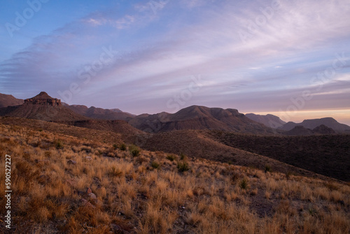 Sunset in desert mountains on the border