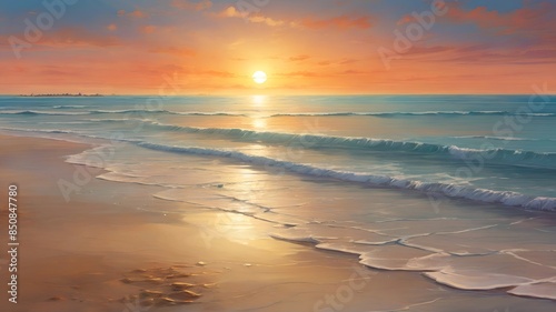 sunset on the beach watercolor illustration background.