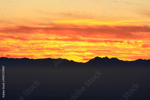 sunset over the mountains with clouds