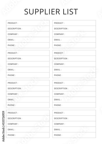 Supplier List planner template